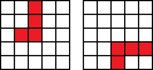 That is, we are able to encode one of the possible images of the shape L with a binary string of length 25: 0010000100011000000000000. This tells us that the input layer of our neural network must contain 25 neurons. In this case, each neuron of the input layer can get two values, 1 when the corresponding pixel of our image is colored and 0 when the pixel is not colored.