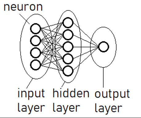 Let's move on to consider how a computer learns to recognize shapes using neural networks. A neural network consists of layers of neurons connected to each other. The first layer is called the input layer, and the last layer is called the output layer. In addition, there are intermediate (or hidden) layers of neurons, the number of which varies. The network below has just one intermediate layer: