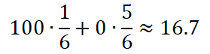 Solution. In our game, you win $100 if you roll 1, or $0 if you roll 2, 3, 4, 5 or 6. The probability of rolling 1 is 1/6 (since the total number of outcomes is 6). The probability of rolling 2, 3, 4, 5, or 6 is 5/6. From here, using the formula above, our average winnings are: